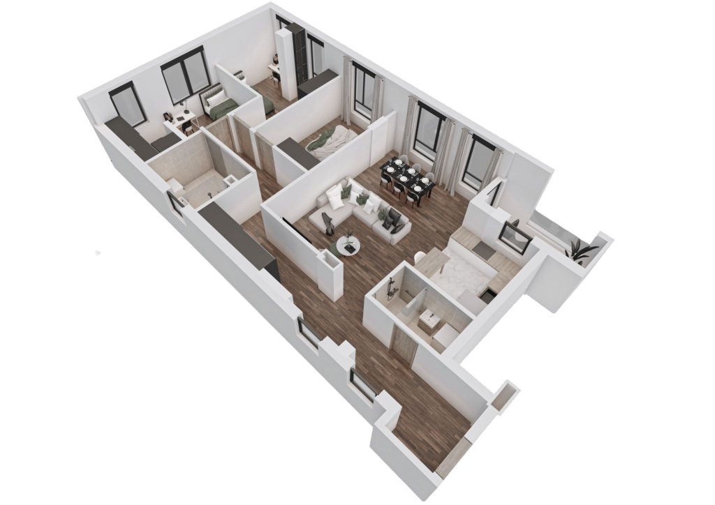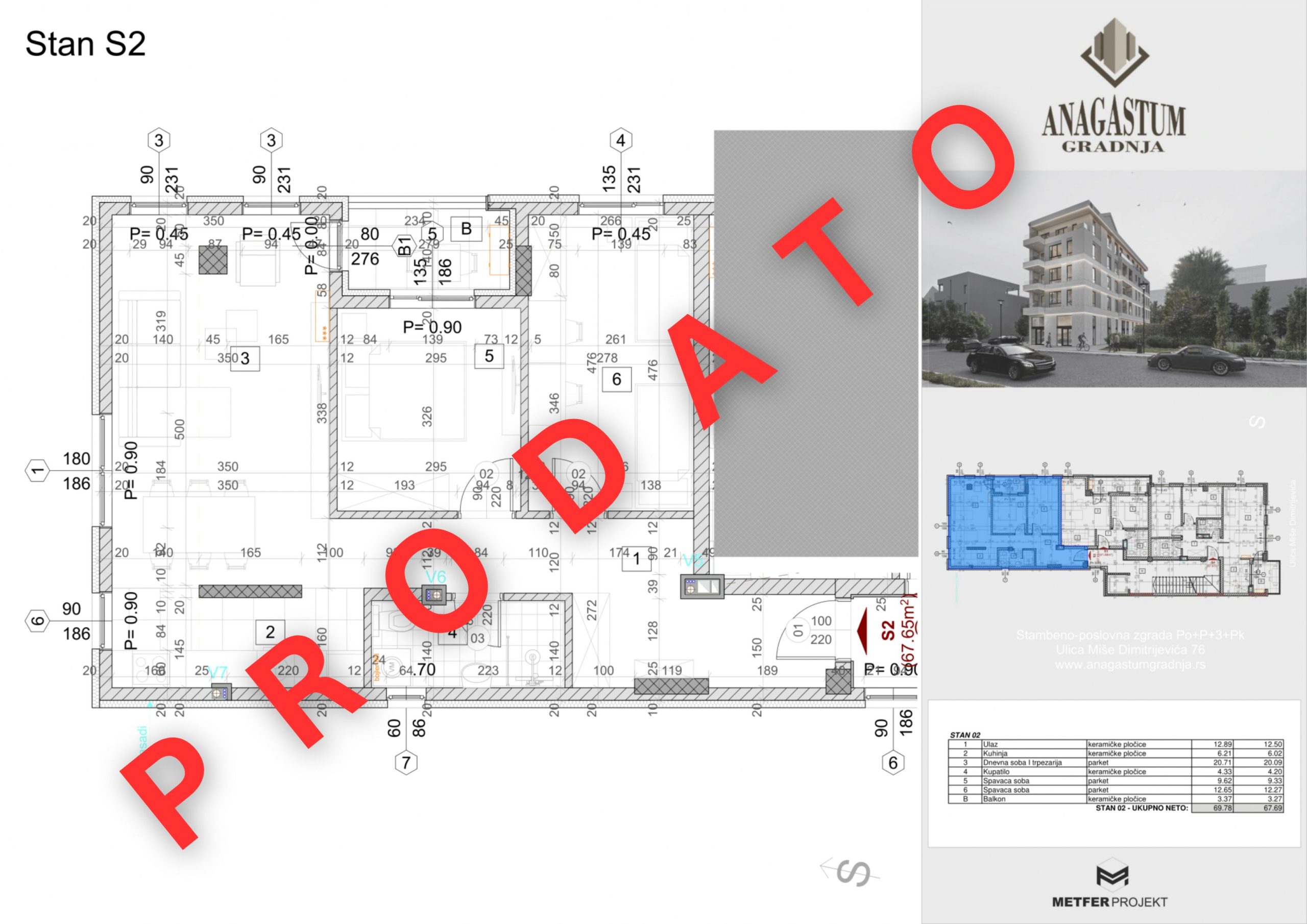 Za izgradnju stanova koriste se samo najbolji materijali. Svi zidovi grade se od kvalitetnog termo bloka, sa izolacijom od stiropora 10 cm. Objekat će imati smart sisteme u stanovima sa daljinskom kontrolom.